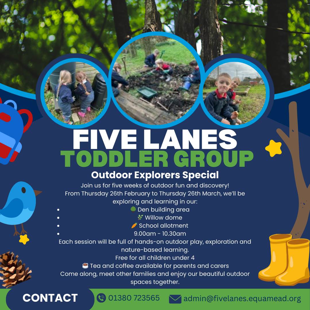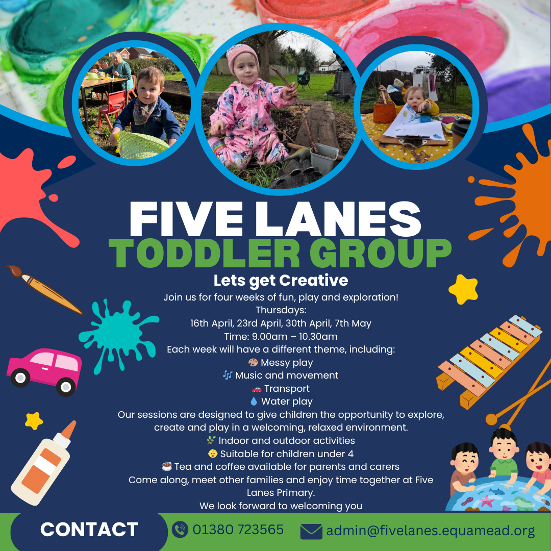 Our Five Lanes Toddler Group is a welcoming space for young children and their parents or carers to come together, play and explore in our wonderful school environment.